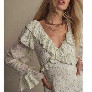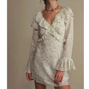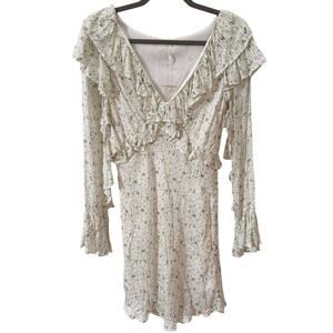 Free People Sweetest Thing Floral Ruffle Mini Dress White Size 6