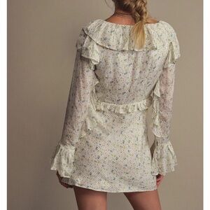 Free People Sweetest Thing Mini Dress sweet floral cream blue ruffle 8 new