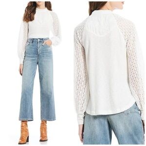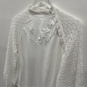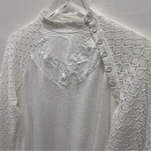 Free People Sweetest Things Thermal Ivory Long Sleeve Top Blouse Small