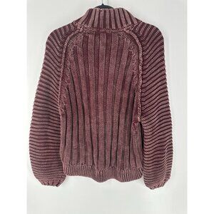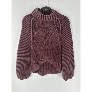 Free People Sweetheart Chunky Mock Neck Garnet Grotto Ribbed Sweater S EUC