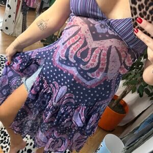 Free People Swept Away V-Neck Printed Maxi Top Purple Size Small