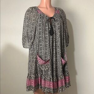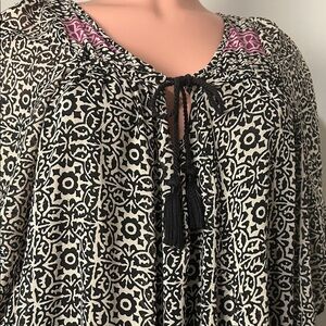 Free People Swing Dress Black Purple Midi Tassel Boho Peasant Hippie Small P