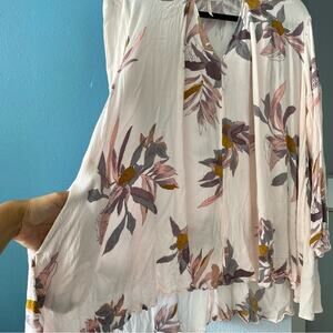 Free People Swing Dress Orchid Pink Floral Tunic Boho Chic Rayon w/Pockets Small