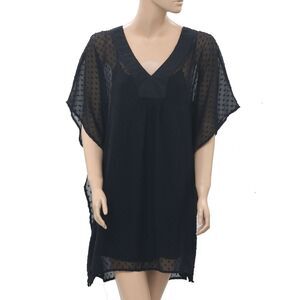 Free People Swiss Dot Embroidered Kaftan Mini Dress Coverup Black XS NEW 283345