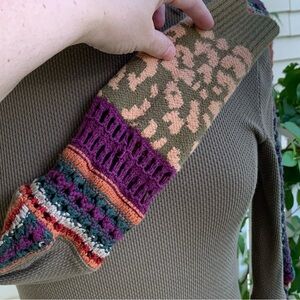 Free People Switch It Up Knit Cuff Thermal Top M Crochet Boho Festival Olive