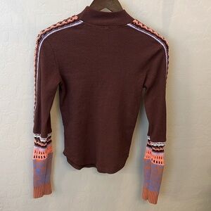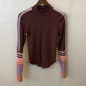 Free People Switch it up thermal, mock neck, brown, knit sleeve detail, sz S