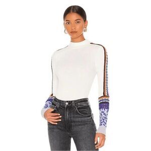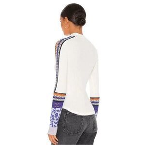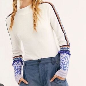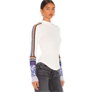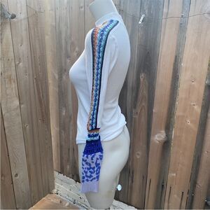 very cool bestseller top featuring a colourful boho inspired knitted design on the shoulders and sleeves, rounded hemline, flattering slim fit