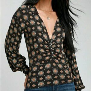 Free People Sydneys Party Top XS Medallion Printed Deep V Revolve Black Trendy