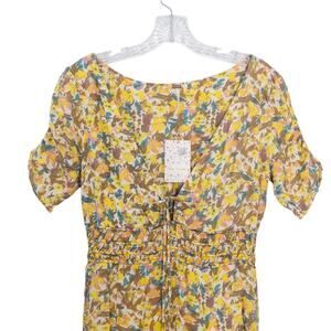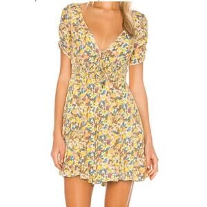 Free People Sz 6 Forget Me Not Dress Yellow Floral Print Mini Nwt