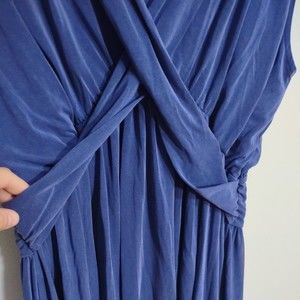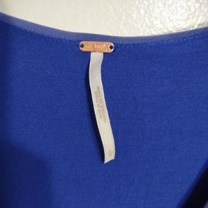 Item:Free People Sz L Cobalt Blue Jersey Knit Front Wrap Dress Short V-Neck Raw Hem