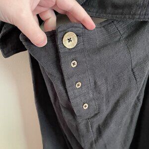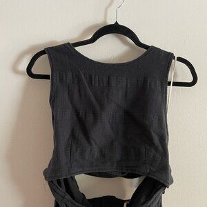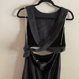 Free People Women Sz L Black Cotton Linen Beach Open Back Cutout The Simple Life Maxi Dress.