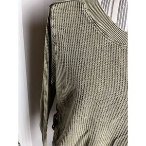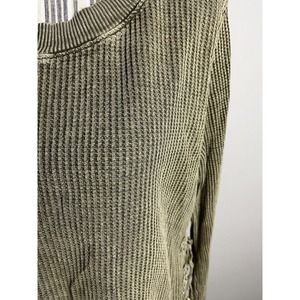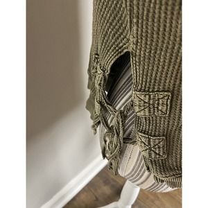 Free People Sz Large Distressed Pullover Top w-tie side closure Boho/Hippi Green