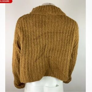 Free People Sz M Alpine Pullover Sweater Brown Acrylic Alpaca Cropped Loose