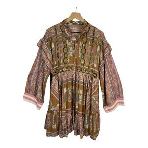 Free People Sz M Augustine Mini Dress Embroidered Babydoll Pockets