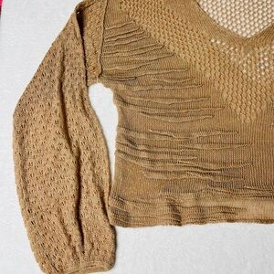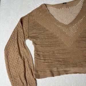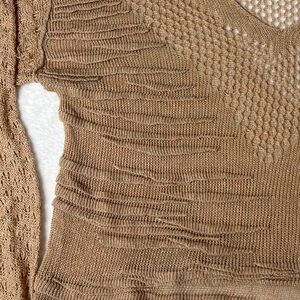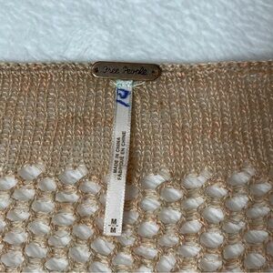 Free People Sz M Beige Linen/Cotton Open Knit Vneck Hippie Boho Indie 70s