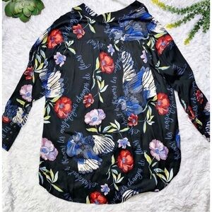 Free People Sz M Black Colorful Oversized Hawaiian Tropical Bird Shirt Tunic Top Truly