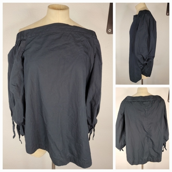 Free People Sz M Show Me Some Shoulder Tunic Top Off Shoulder Black OB481320