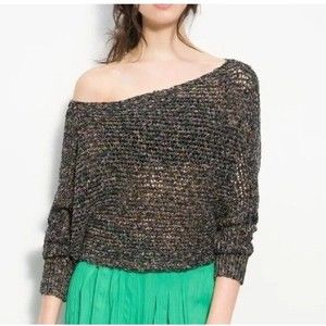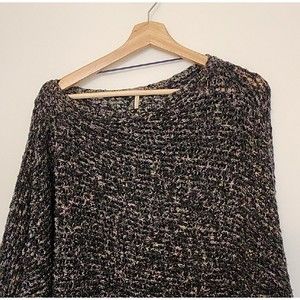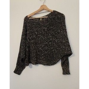 Free People Sz S Slouchy Open Knit Cropped Sweater Dolman Sleeve Linen Blend