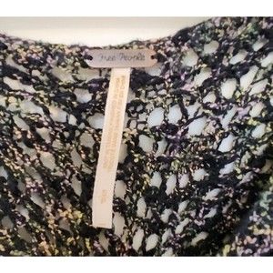 Free People Size S Slouchy Open Knit Cropped Sweater Dolman Sleeve Linen Blend.