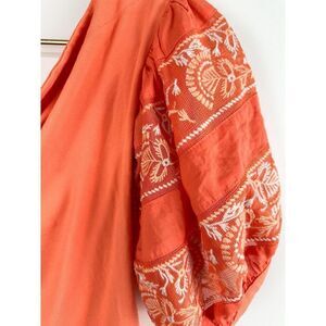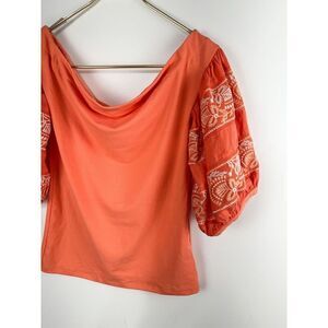 Free People Sz S Coral Rock With It Embroidered Puff Sleeve Off The Shoulder Top. Condition is Pre-owned.