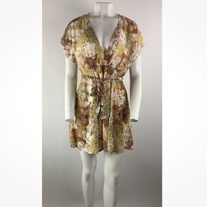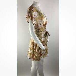 Free People Sz XS Freddy Tie Mini Dress In Floral Print Brown 100% Modal
