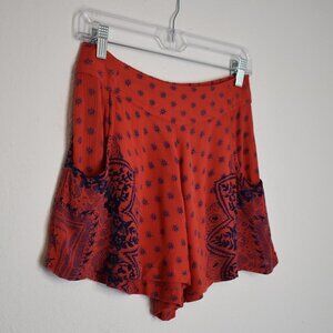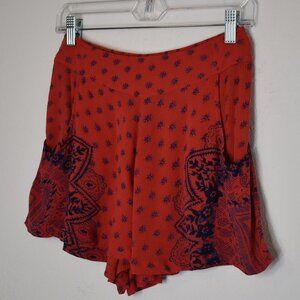 Free People Sz XS Mandala Flowy Lounge Shorts Smocked back 100% Rayon India