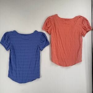 Free People T Shirt Bundle Womens Large Blue Pink V Neck Puff Sleeve Casual