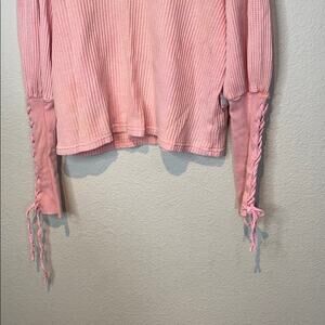 Brand new Free People Tasha Thermal Top Pastel Pink size XS. F19J04706. Crewneck. Long puff sleeves with ties. Slips over the head. Knit construction.