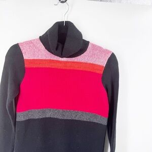 Free People TURTLENECK Sweater Dress XS Red Black Turtle Neck Warm. EUC