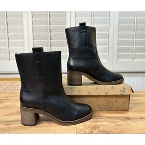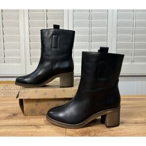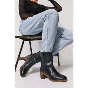 Free People Tabby Ankle Boots Black Smooth Leather Size US 8 NIB Chic Block Heel