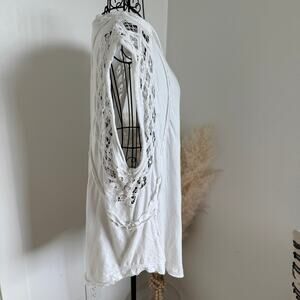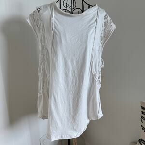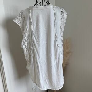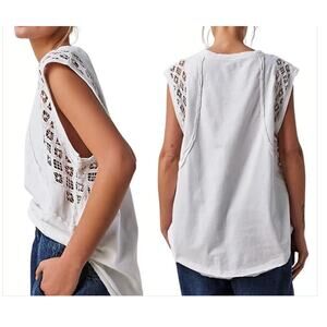 Free People Table for Two Tee White Crochet Boho Sleeveless Cotton Top Small