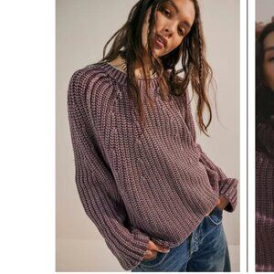 Free People Take Me Home Oversized Plum Chunky Knit Slouchy Sweater