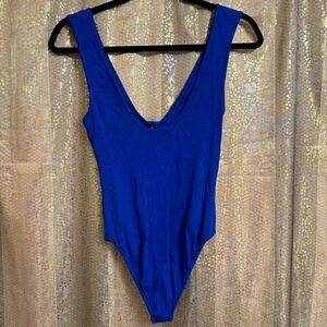 Free People Take Me Out Henley Tank-Top Bodysuit Cobalt Blue Small