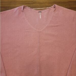 Free People “Take Me Places” Pink Knit V-Neck Sweater M – Oversized Soft Girl