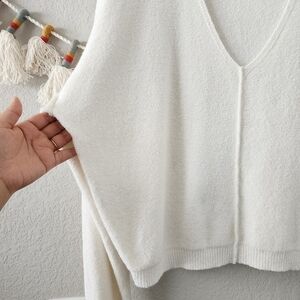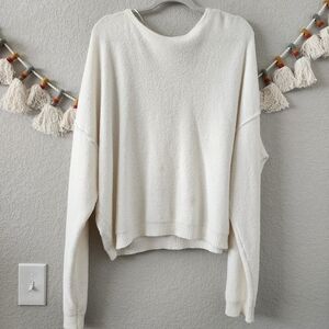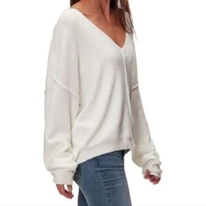 Free People Take Me Places White Terry V-neck Drop Shoulder Pullover Cozy Knit M