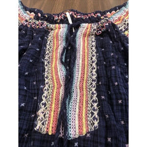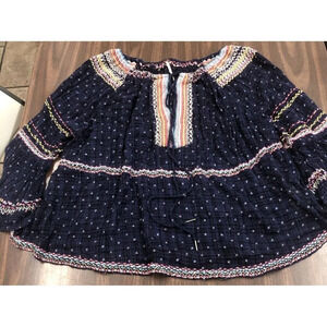Free People Talia Top Size Large Boho Peasant Bell Sleeve Embroidered Oversized