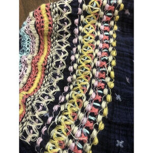 Made from a blend of rayon and cotton, this blouse is perfect for all seasons and can be hand washed for easy care. The gauze fabric type and blue color give it a bohemian and hippie vibe, making it a great addition to any boho-chic wardrobe. This top is a size small and is part of the Women's Clothing category, specifically the Tops subcategory.