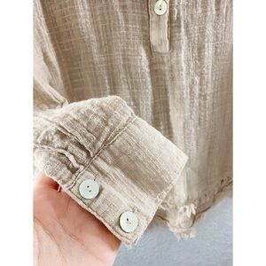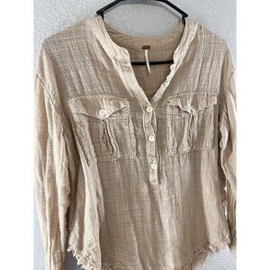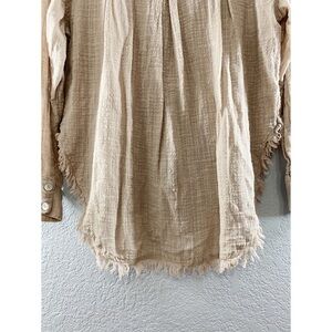 This top is cut from a lightweight woven cotton blend and features utility-style pockets and a frayed hem that both add interest to this classic wardrobe staple.