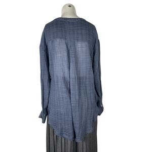 Free People Talk To Me Buttondown Top Women's XS Oversize Blue Plaid Long Sleeve