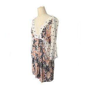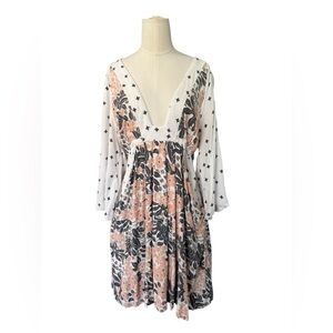Free People Tallula White Print Long Sleeve Mini Dress in Sz Large
