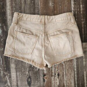 Free People Tan Button Fly Distressed Jean Shorts Size 26