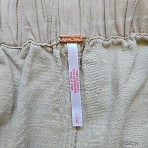 Free People Tan City Slouch Boyfriend Ankle Pants Woman's Size Large Big Pockets.