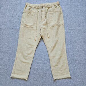 Free People Tan City Slouch Boyfriend Ankle Pants Woman's Size Large Big Pockets
