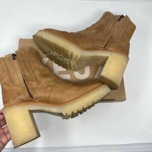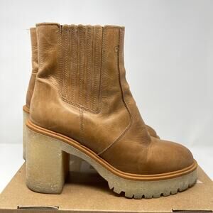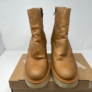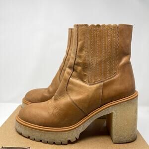 Free People Tan James Leather Heeled Lug Boots (Sz 38.5)