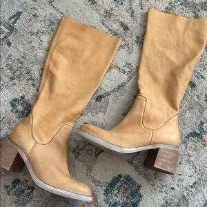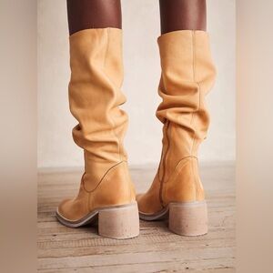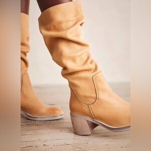 Step up your style game with these effortlessly chic Free People Slouchy Boots. Crafted from soft tan leather, they’re designed with a relaxed shaft that naturally slouches for that laid-back, boho-inspired vibe.