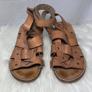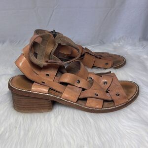 Free People Tan Leather Fisherman Gladiator Style Heeled Sandals Sz 39/U…