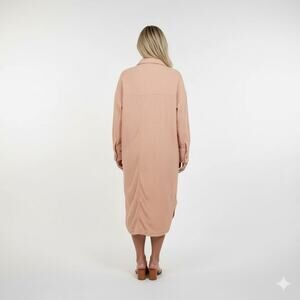 Adorable tan long button down shacket dress from Free People. Size small and in excellent condition. Measures 43.5" long, sleeves are 18.5" and bust (from seam) is 24.5"