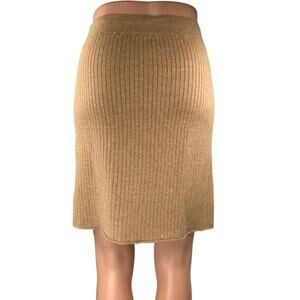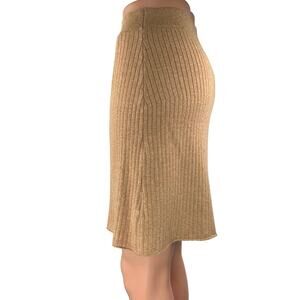 Free People Tan Rib Knit Stretch Knee Length Pencil Wrap Sweater Skirt Size M
