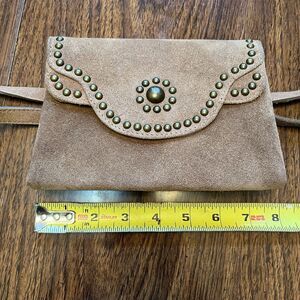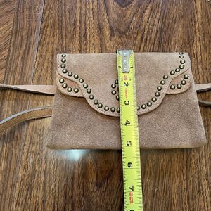 Chic suede mini bag by Free People. Features gold stud detailing. Perfect for any occasion.
