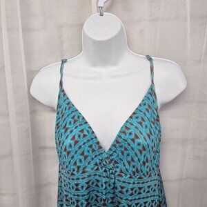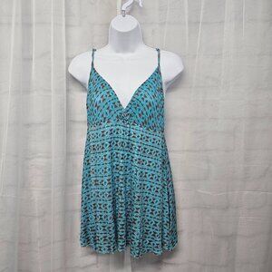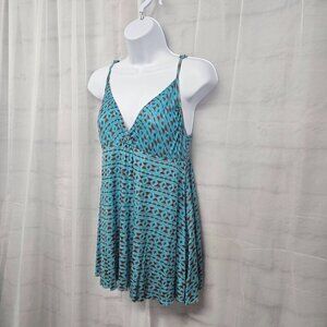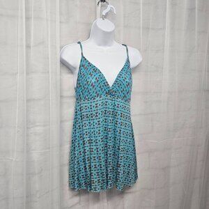 Free People Tank Blue Orange Y2K Babydoll Aztec Jersey Boho Hippie Festival S